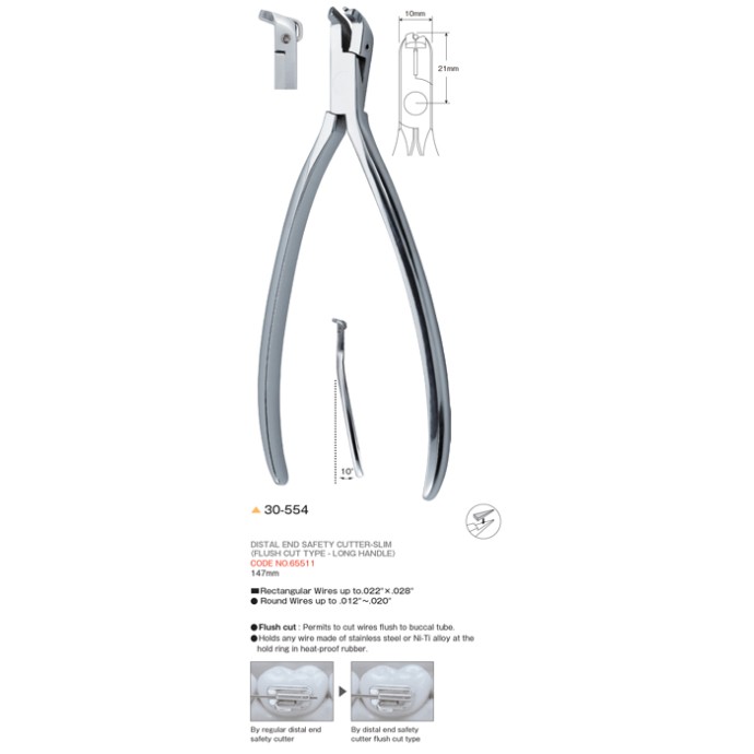 Rectangular wires up to .022''x.028'', round wires up to .012'' - .020'', 147mm.