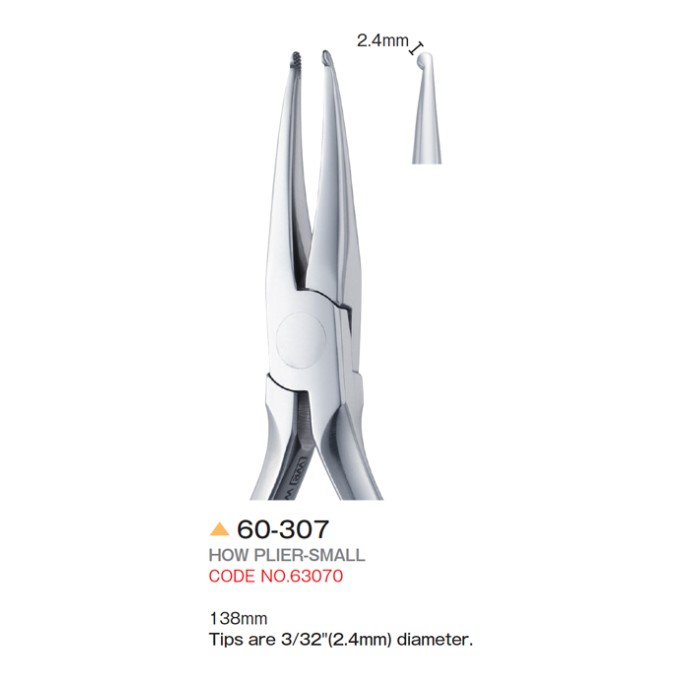 How plier small, 138mm,, tips are 3/32'' (2.4mm) diameter.
