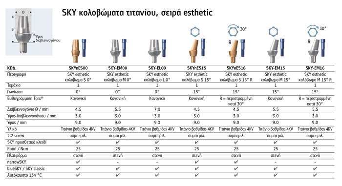 SKY κολοβώματα τιτανίου, σειρά esthetic narrow platform.