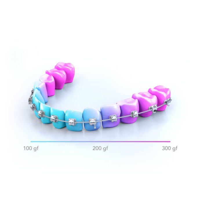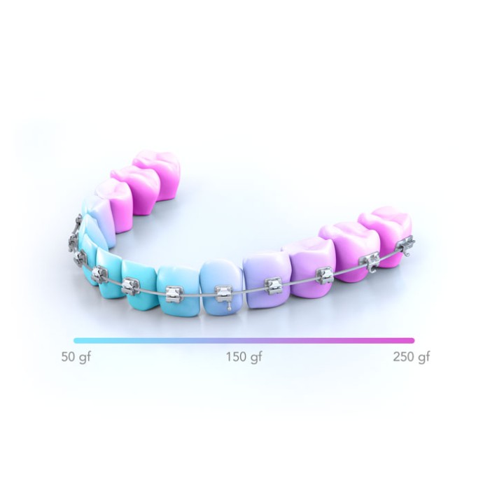 Ιδανική δύναμη προσαρμόζεται στην ανατομία του συγκεκριμένου προς μετακίνηση δοντιού. Τα εύρη δύναμης περιλαμβάνουν: