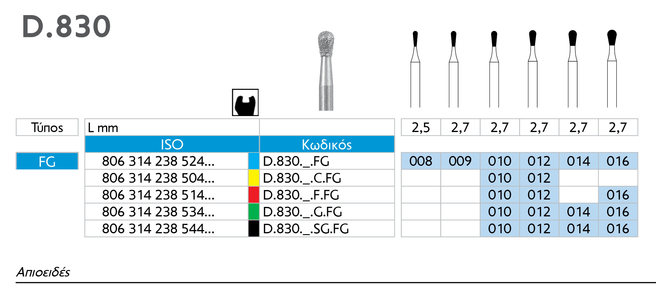 ΕΠΕΞΗΓΗΣΗ ΚΩΔΙΚΟΥ D.: Diamond, όλοι οι κωδικοί ξεκινάν με το γράμμα D, ακολουθούμενο από αριθμό που δηλώνει τον τύπο του διαμαντιού, π.χ. D.368. Αμέσως μετά ο αριθμός υποδηλώνει τη διάμετρο, π.χ. 014. Η αδρότητα υποδηλώνεται με τα γράμματα στο τέλος ως ακολούθως