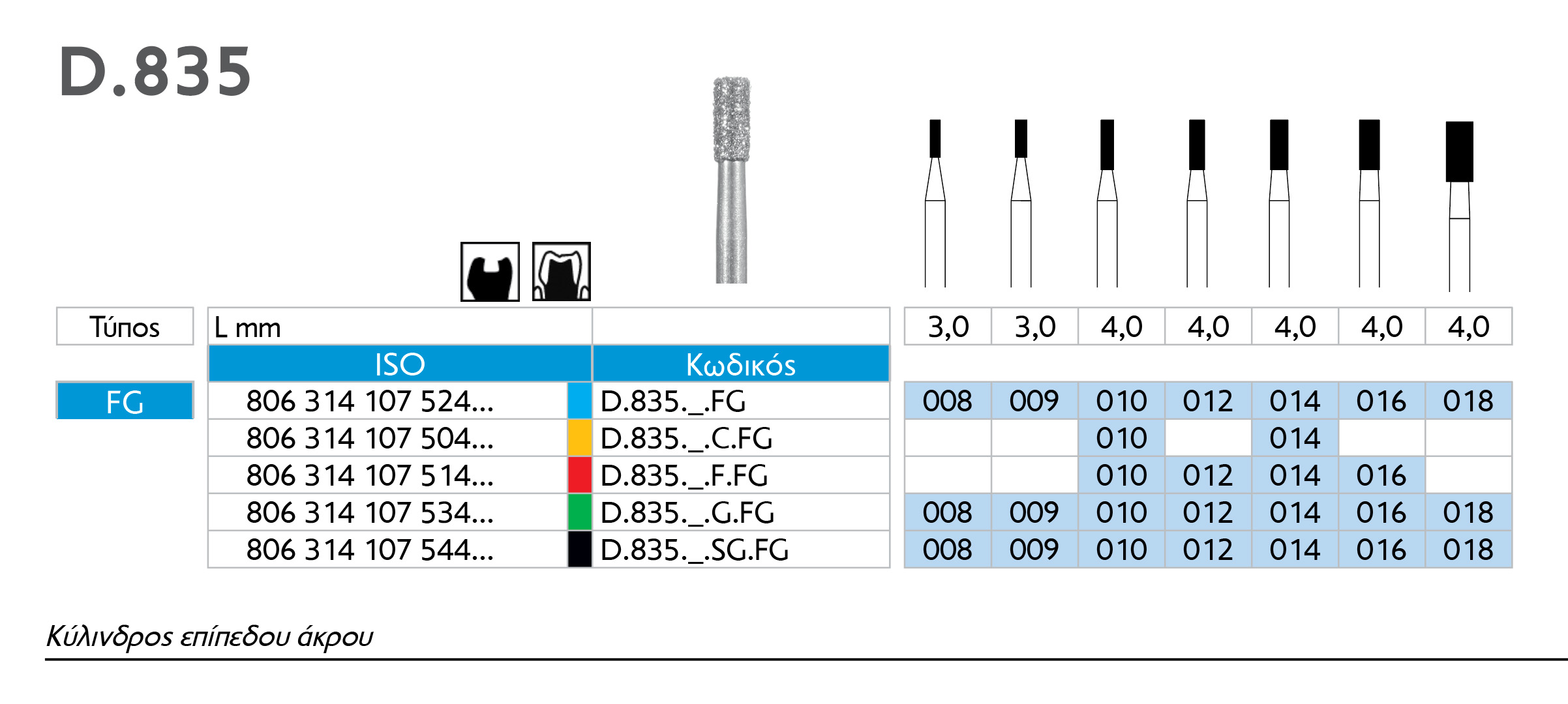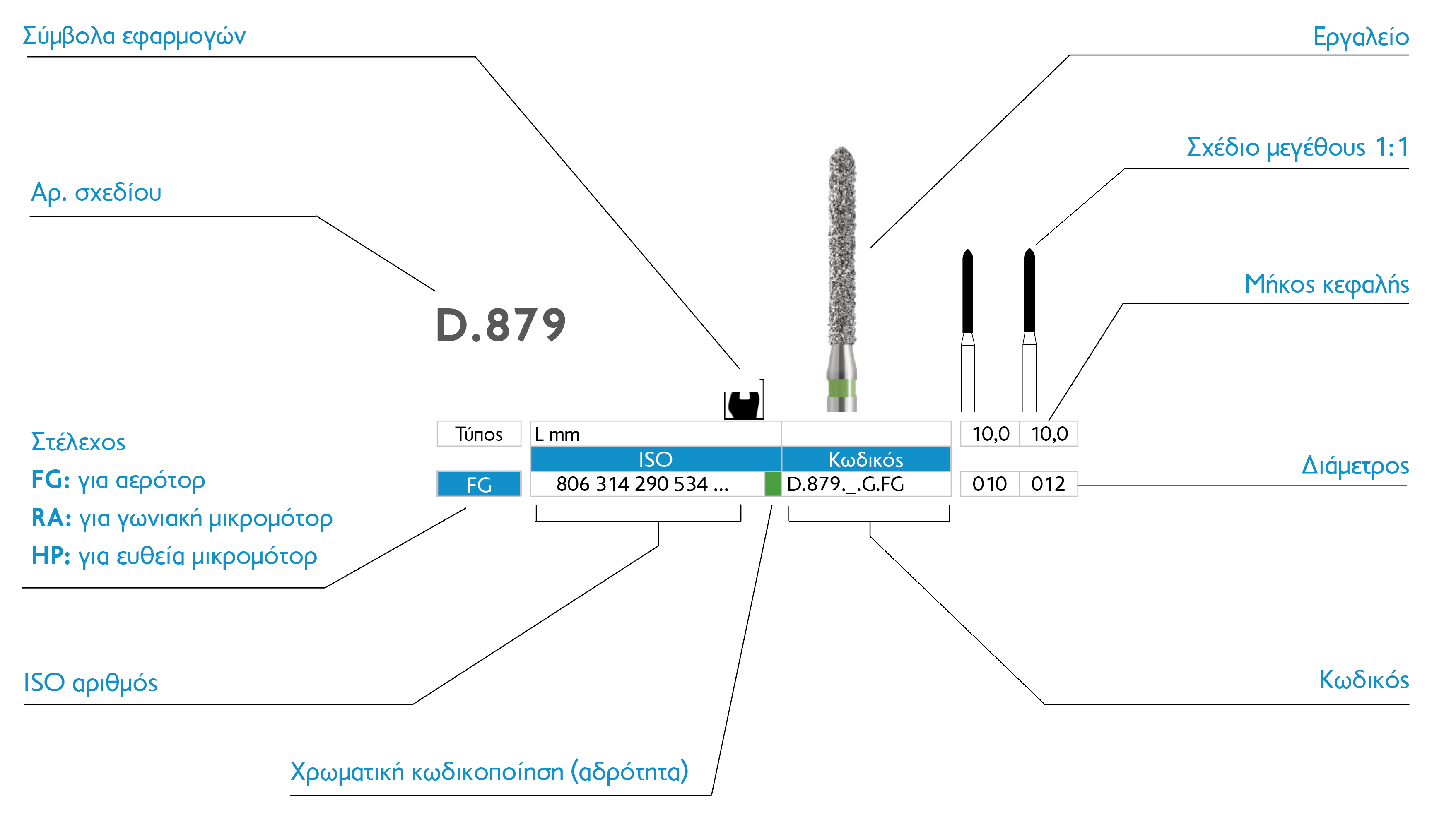 ΕΠΕΞΗΓΗΣΗ ΚΩΔΙΚΟΥ D.: Diamond, όλοι οι κωδικοί ξεκινάν με το γράμμα D, ακολουθούμενο από αριθμό που δηλώνει τον τύπο του διαμαντιού, π.χ. D.368. Αμέσως μετά ο αριθμός υποδηλώνει τη διάμετρο, π.χ. 014. Η αδρότητα υποδηλώνεται με τα γράμματα στο τέλος ως ακολούθως