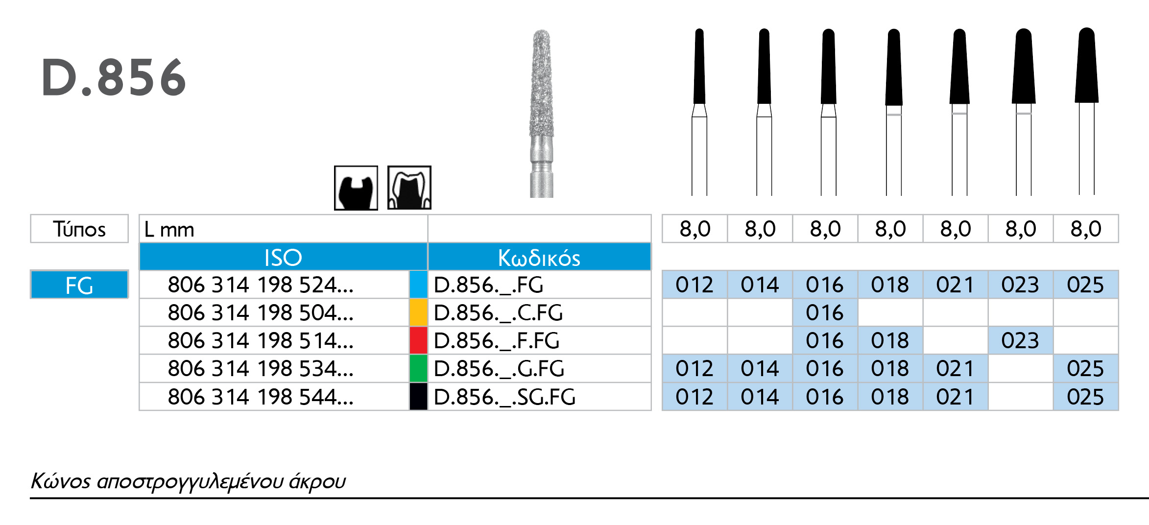 ΕΠΕΞΗΓΗΣΗ ΚΩΔΙΚΟΥ D.: Diamond, όλοι οι κωδικοί ξεκινάν με το γράμμα D, ακολουθούμενο από αριθμό που δηλώνει τον τύπο του διαμαντιού, π.χ. D.368. Αμέσως μετά ο αριθμός υποδηλώνει τη διάμετρο, π.χ. 014. Η αδρότητα υποδηλώνεται με τα γράμματα στο τέλος ως ακολούθως