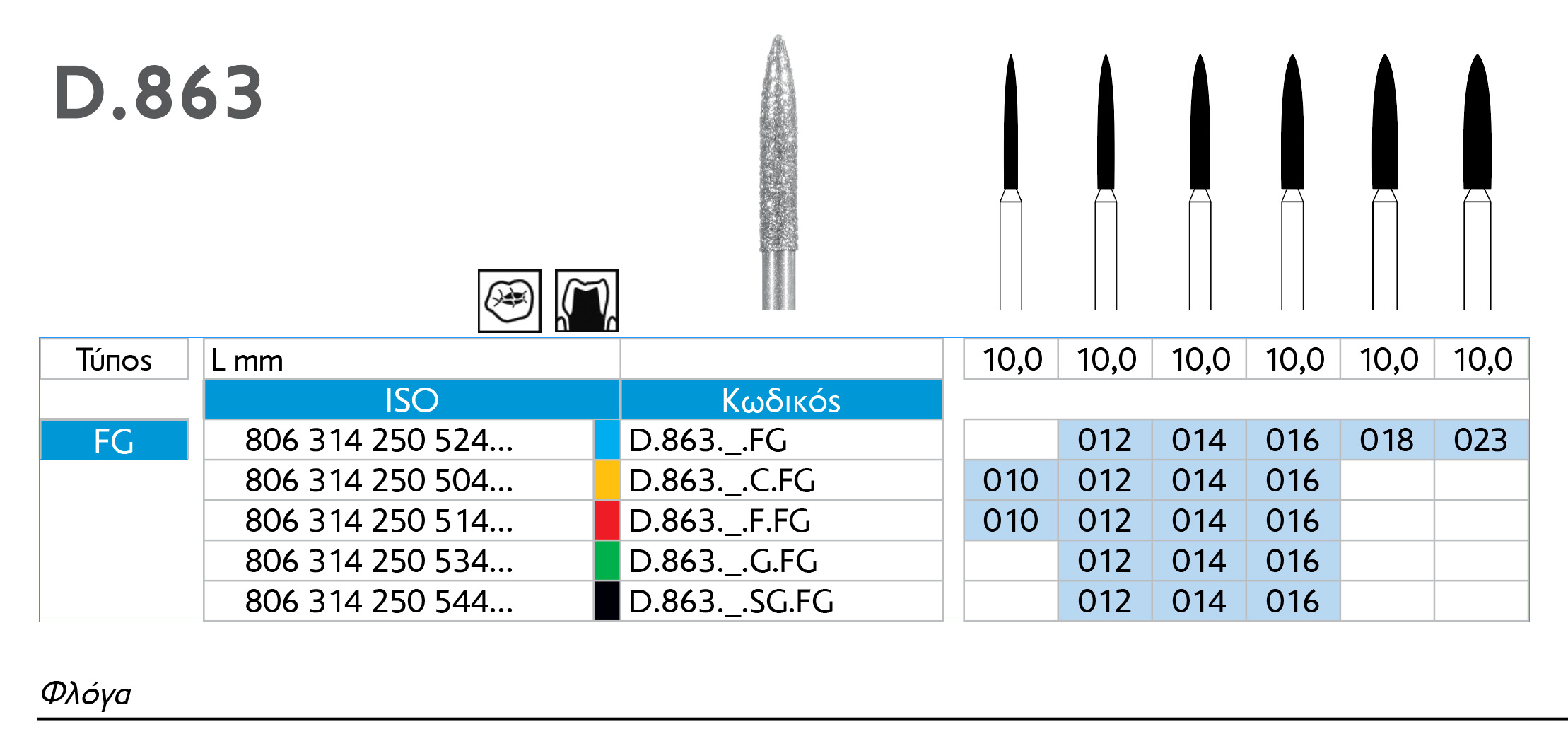 ΕΠΕΞΗΓΗΣΗ ΚΩΔΙΚΟΥ D.: Diamond, όλοι οι κωδικοί ξεκινάν με το γράμμα D, ακολουθούμενο από αριθμό που δηλώνει τον τύπο του διαμαντιού, π.χ. D.368. Αμέσως μετά ο αριθμός υποδηλώνει τη διάμετρο, π.χ. 014. Η αδρότητα υποδηλώνεται με τα γράμματα στο τέλος ως ακολούθως