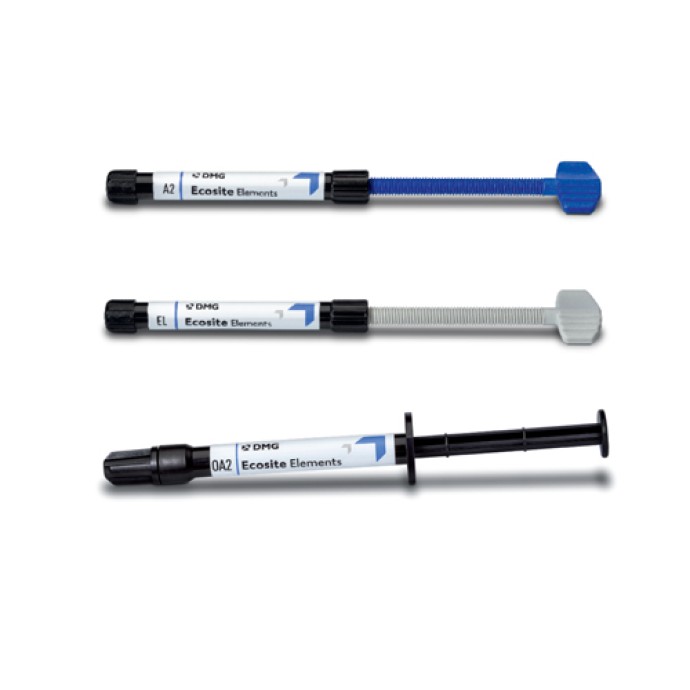 Οι ενότητες αποχρώσεων των Ecosite Elements έχουν μειωθεί στα ουσιώδη και είναι ιδανικά σχεδιασμένες και συντονισμένες να συμπληρώνουν η μία την άλλη τέλεια! Το γεγονός αυτό, κάνει την εργασία απλούστερη και απαιτεί πολύ λιγότερο χώρο αποθήκευσης. Το σύστημα των Ecosite Elements συμπληρώνεται με την ρητίνη ογκώδους πλήρωσης Ecosite Bulk Fill, τον συγκολλητικό παράγοντα Ecosite Bond, το αδροποιητικό Etching Gel και διάφορα βοηθήματα.