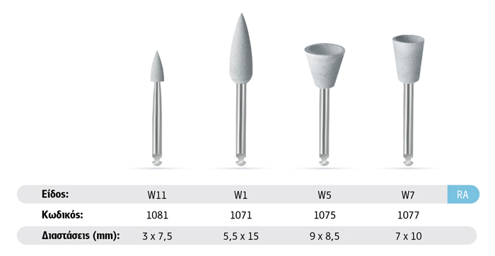 Σύστημα στίλβωσης ενός βήματος για ρητίνες, κεραμικά αστρίου, αμάλγαμα και χρυσό.