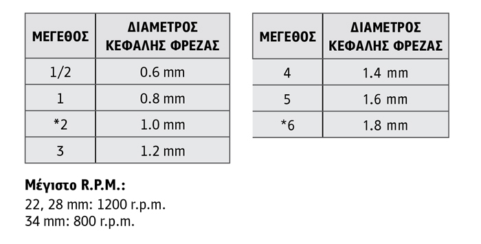 Στρογγύλες φρέζες γωνιακής μικρομότορ