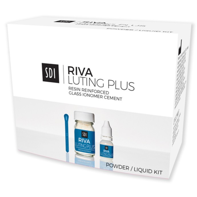 - Riva Luting Plus σκόνη/υγρό. Περιλαμβάνει 10 g (8,95 ml) φιαλίδιο υγρού, 25 g βάζο σκόνης και βοηθήματα