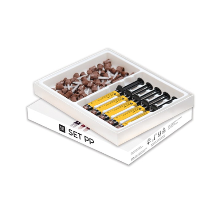 Το υλικό σκληραίνει από μόνο του σε 5 λεπτά ή σε μόλις 20 δευτερόλεπτα με λυχνία φωτοπολυμερισμού.