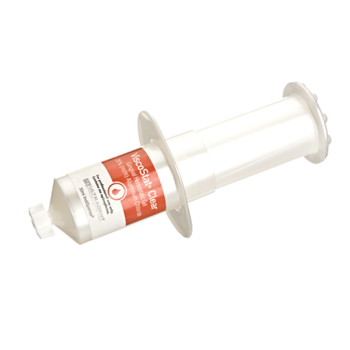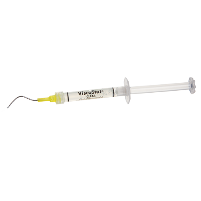 Το ViscoStat Clear είναι ένα παχύρρευστο αιμοστατικό τζελ 25% χλωριούχου αργιλίου. Έχει pH ~1,0. Η πατενταρισμένη, φιλική προς τους ιστούς silica σύνθεση, εξαλείφει προσωρινά την ήπια αιμορραγία, προκαλώντας την διόγκωση του κολλαγόνου στα τριχοειδή αγγεία, κλείνοντάς τα. Δεν δημιουργείται πήγμα, δεν προσκολλούνται υπολείμματα αιμοστατικού στην παρασκευή – πολύ σημαντικό για την αισθητική ζώνη. Το ViscoStat Clear δεν χρωματίζει τους μαλακούς ή σκληρούς ιστούς.